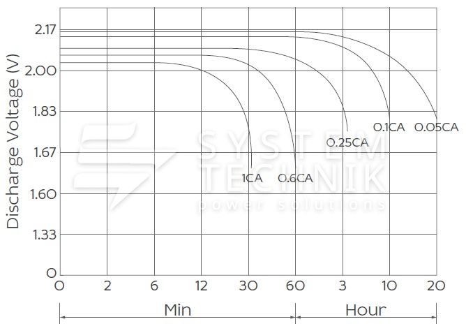 - Срок хранения без подзаряда: 6 мес. при 25°C;