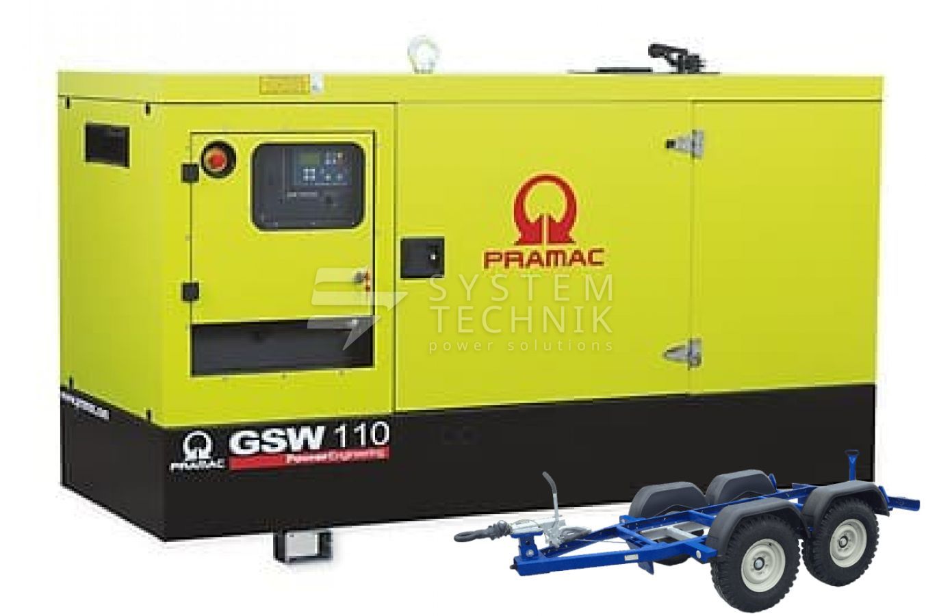 - Дизельный генератор Pramac GSW 110 P 230V 3Ф В кожухе на прицепе