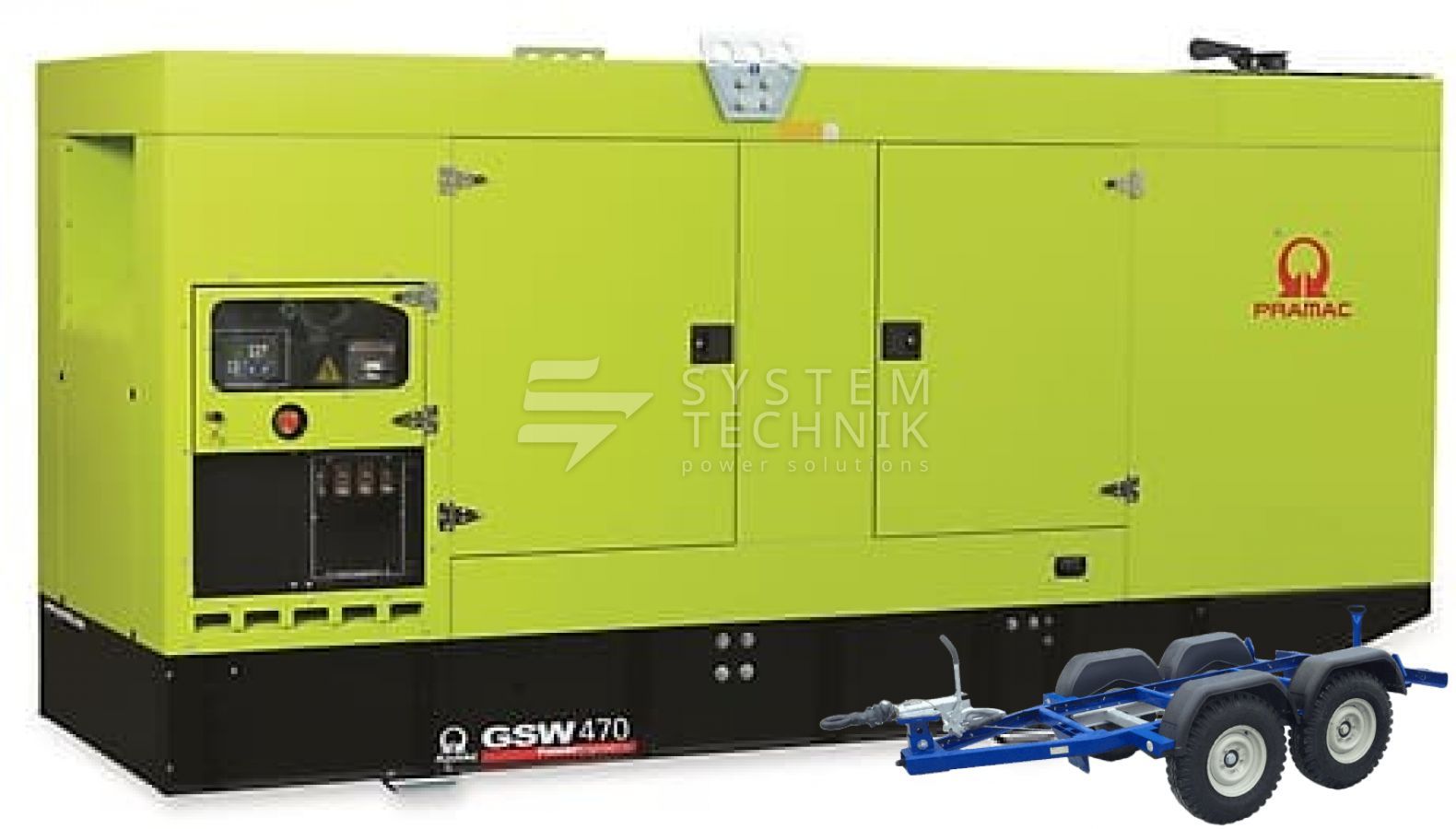 - Дизельный генератор Pramac GSW 470 P 400V (ALT. LS) В кожухе на прицепе