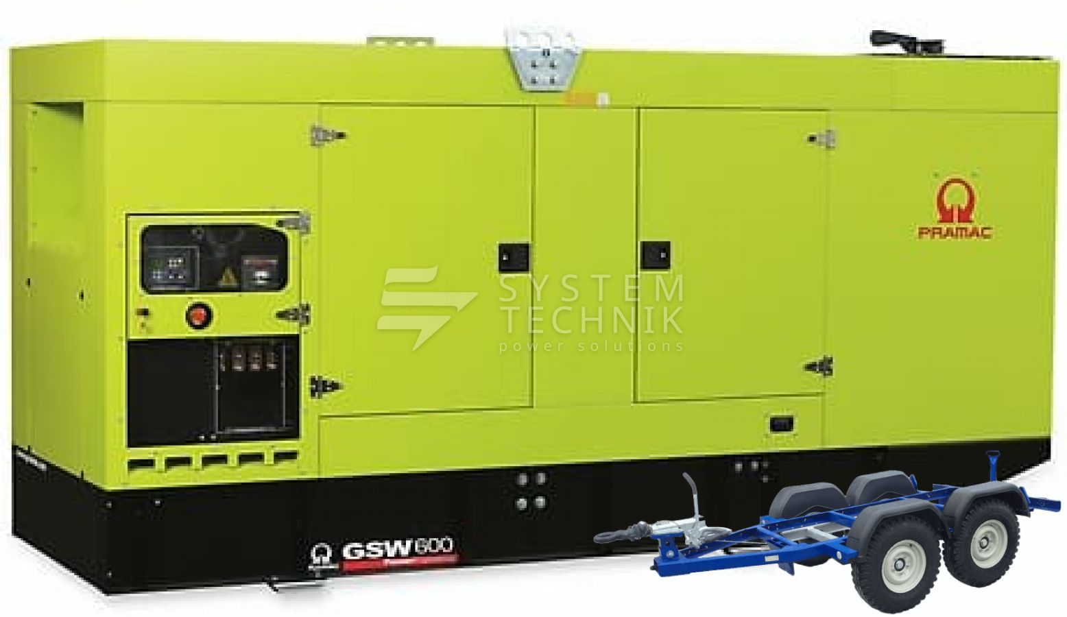 - Дизельный генератор Pramac GSW 600 V 230V 3Ф В кожухе на прицепе